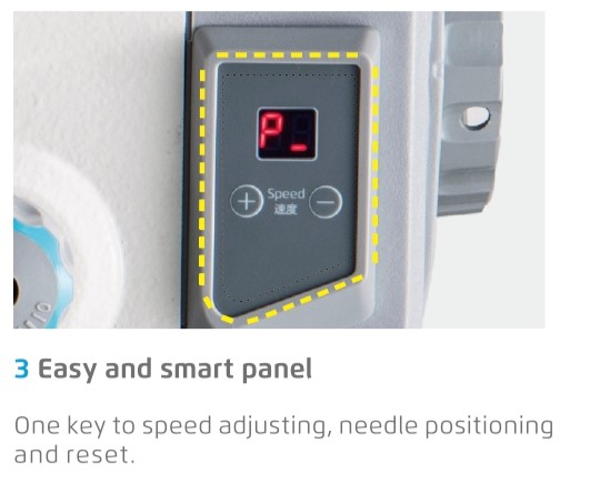 - Energy-Efficient Direct Drive Motor: The integrated direct drive motor offers low energy consumption while ensuring consistent stitch quality and reduced machine noise and vibration.